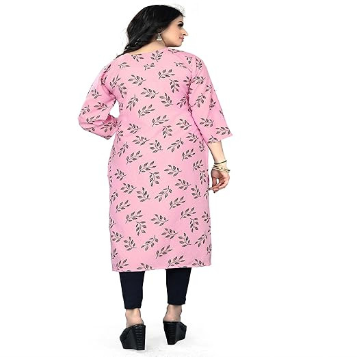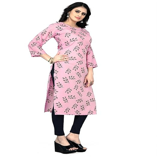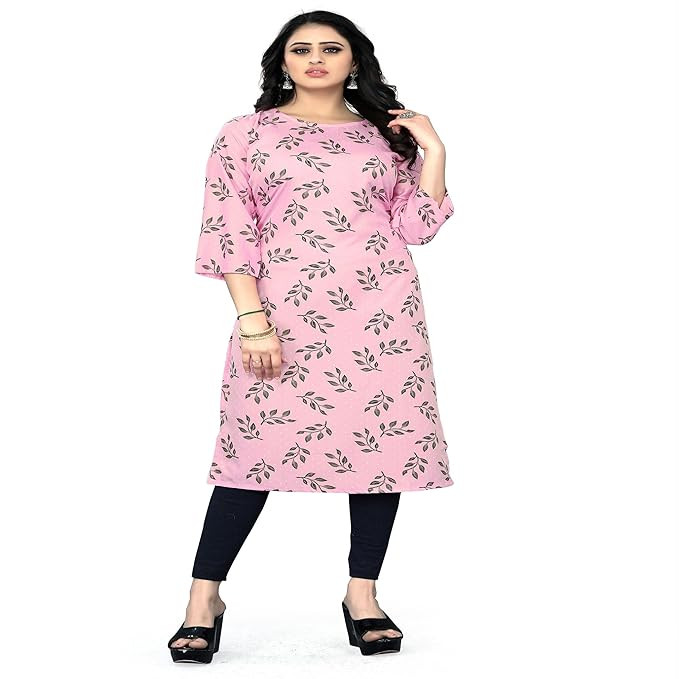 Material compositionCrepe Sleeve typeThree Quarter LengthKnee Length Neck styleRound Neck PatternPrint StyleStraight