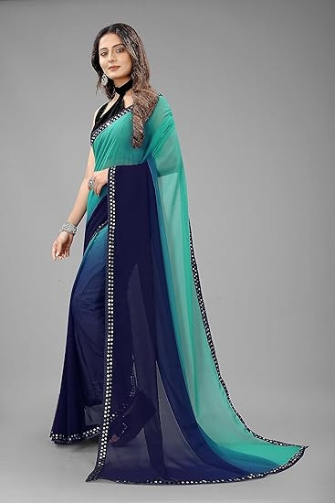 Saree Fabric: georgette, Blouse Fabric: Raw Silk, Work: Lace, Dry Clean Only