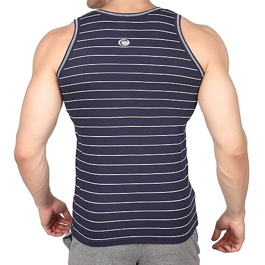 Cotton Rich Striper Vests Fabrics are dyed with fast colours and have been finished to ensure that the shrinkage of the fabric is controlled. This Vest has bold stripes, a contrast 'C' logo branding and Contrast detailing at the armhole which enhances the sporty look of this style. Team this Vest up with denims, shorts, tracks or with a pair of boxers . Perfect to wear to the Gym, Beach or just to lounge around.