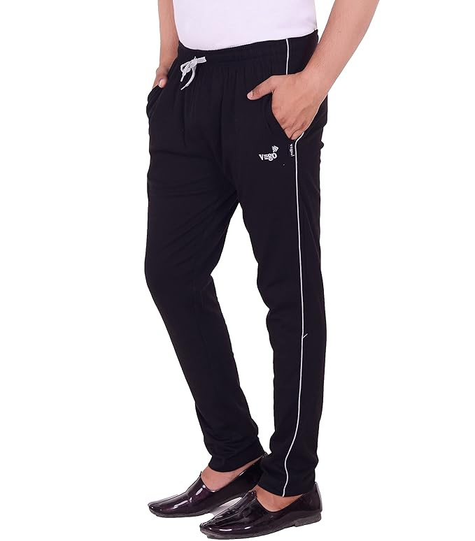 Men's Regular Fit Pure Cotton Black Plus Size Lower/Track Pants