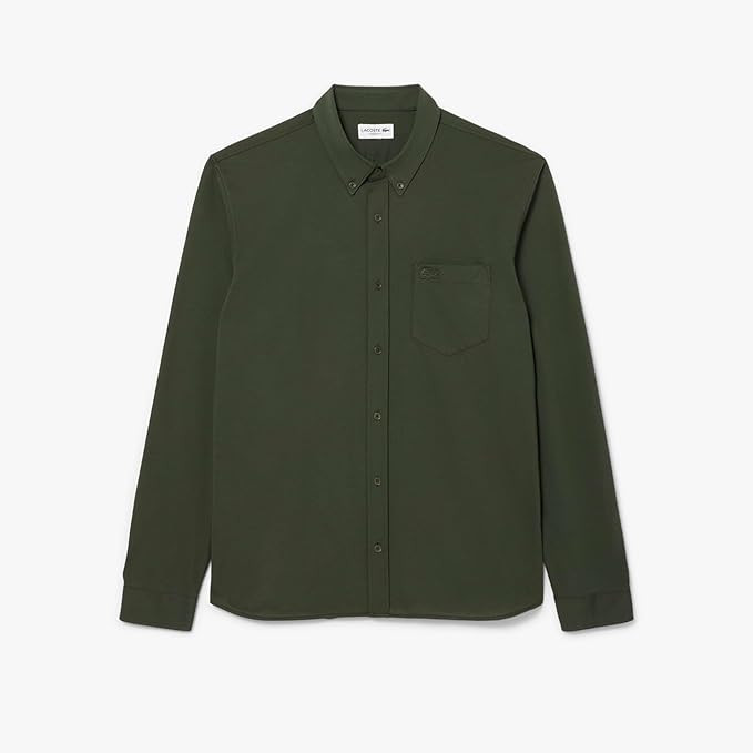 Patch pocket on breast Genuine mother-of-pearl buttons on button placket, collar and cuffs Sewn-on embroidered crocodile on chest pocket