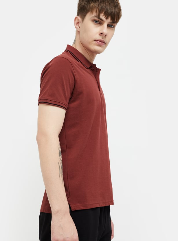 Level up your sportswear game with this T-shirt. Designed with a classic polo collar, half sleeves, and a two-button placket, it provides the perfect blend of comfort and style, making it ideal for both on and off the field. The contrast tipping adds to the look.
