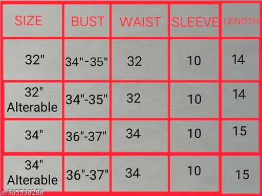 30, 30 Alterable, 32, 32 Alterable (Bust Size : 34-38 in, Length Size: 13 in, Shoulder Size: 12 in)
