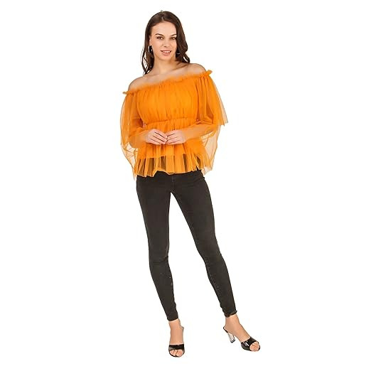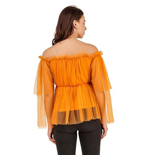 Women's Off Shoulder Net Top – (Yellow)