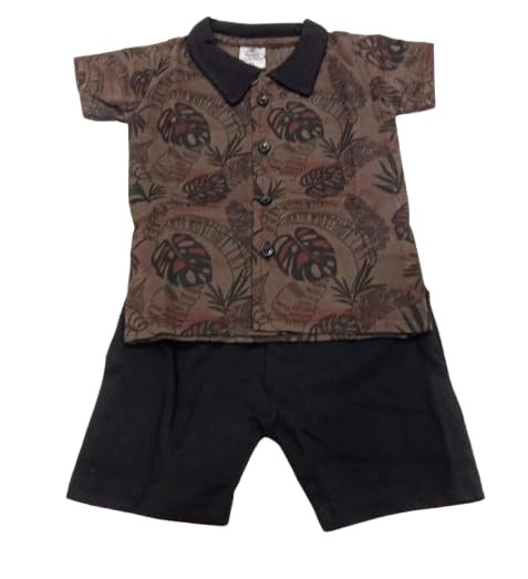 brown printed t shirt with black shorts is a very elegant but casual look. It has a black collar and botton down with half sleeves. (brown &black, excel)