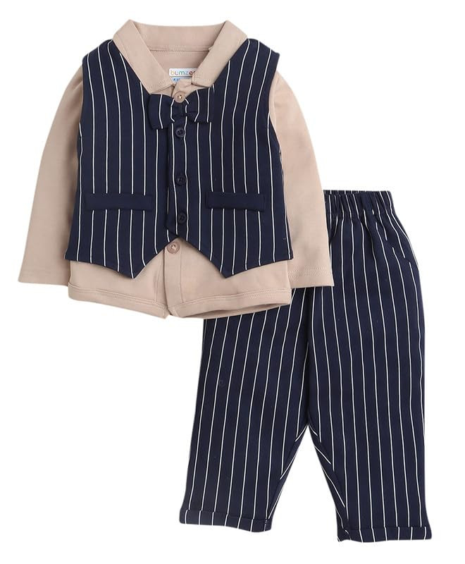 3 Piece Stripe Print Funky Boys Party Suit - Coat with T-Shirt Trouser & Bowtie Dress Clothing Set for Infant Toddler Boys