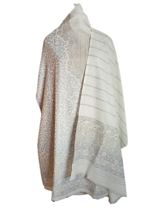 Womens Woolen Kashmiri Suit For Women With Salwar And Shawl Winter Wear Kani Unstitched Fabric Woollen Kurta Pant Set Dress Material by pure Pashmina wooltex(WHITE)
