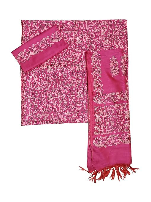 Women's Block Print Unstitched Salwar Suit Dress Material with Dupatta | Batik Print Katan Silk Salwar Suit fabric