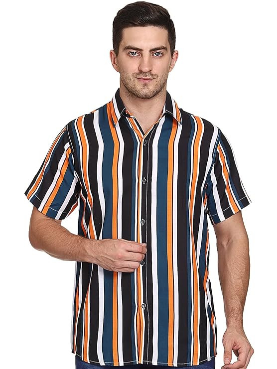 Men's Cotton Rayon Digital Printed Half Sleeves Shirt (Lining)